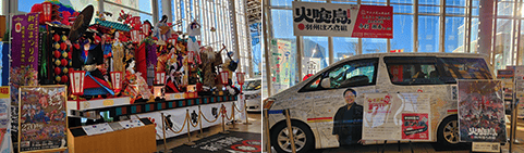 新庄駅改札を抜けると、大きな新庄祭山車が展示されています。