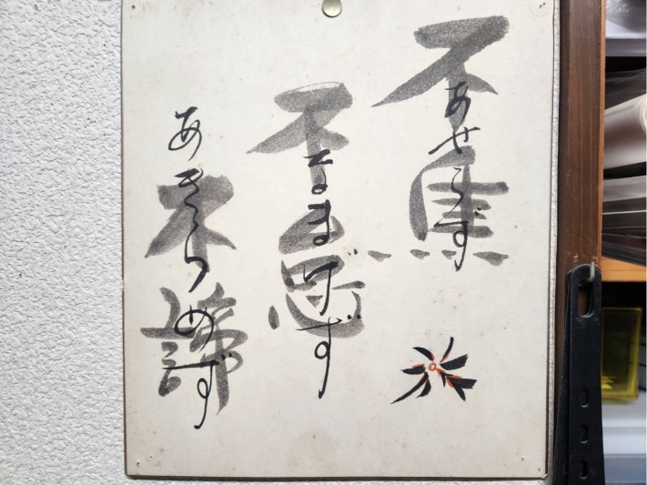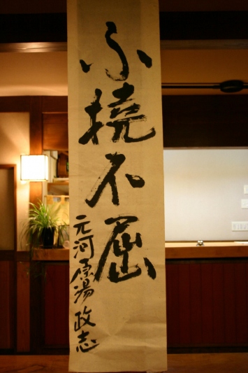 こちら上・・・館主が脳梗塞になったときに書いてきた色紙デス。下の書は・・・東日本大震災のときに、館主が大きな巻紙に書いたものデス。