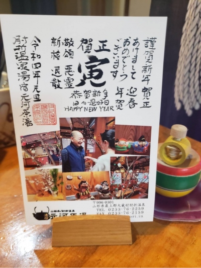 こちらは3年前お正月の1ショット♪そして・・館主の直筆&おかみデザインの賀状デス◎◎
