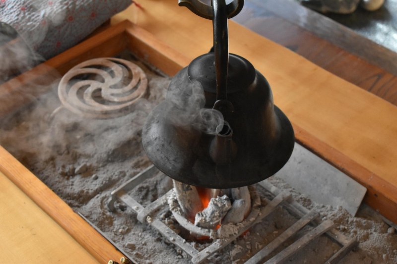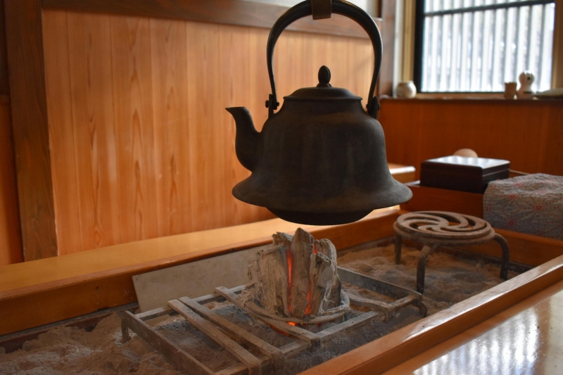 ロビーには、熾した備長炭に山形鋳物鉄瓶が登場です♪