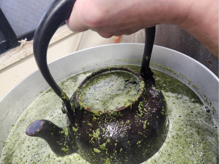 みごとに 黒々とした鉄瓶に生まれ変わります!!