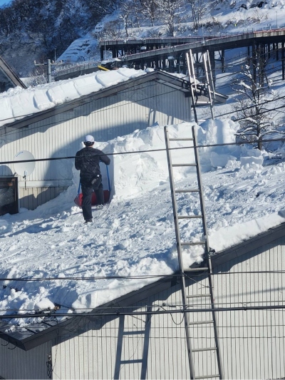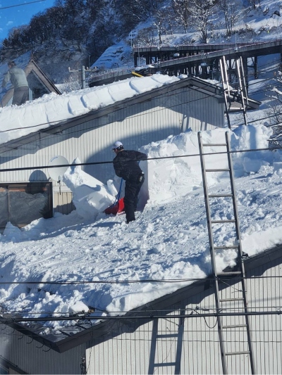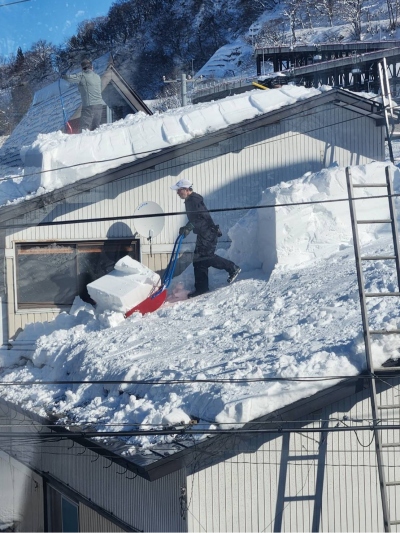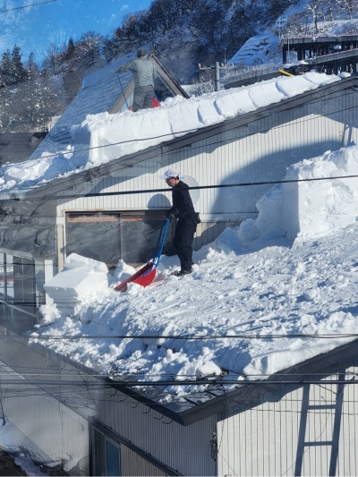 こちら↓は 元河原湯社員寮の雪下ろし風景。
