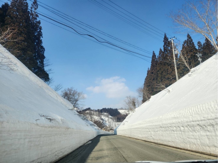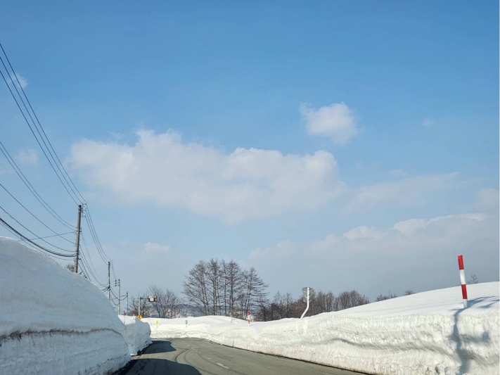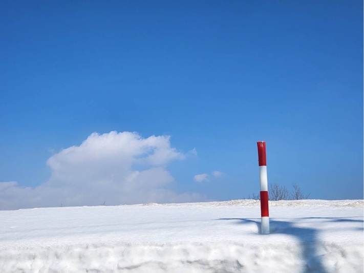 明るい陽射しが真っ白な雪を照らす景色となっています。
