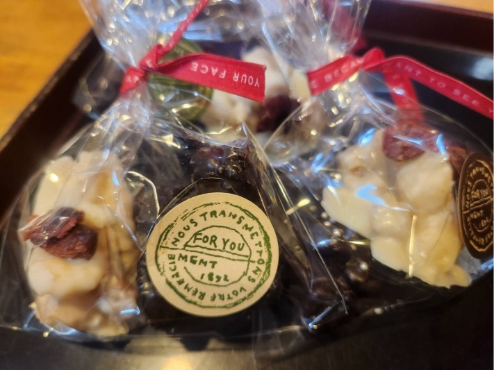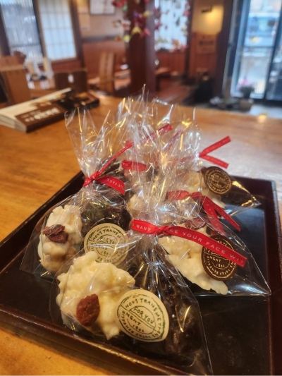 おかみ手作り<あられチョコ>プレゼントさせていただきます♪