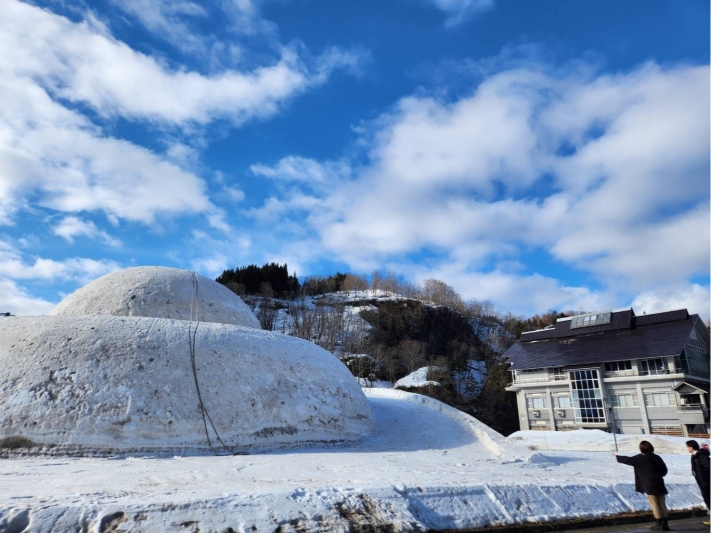 目の前に現れたのは、巨大雪だるま<おおくら君>です!